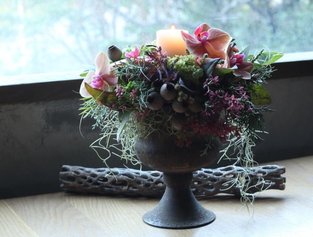 キャンドルを合わせたアレンジメント